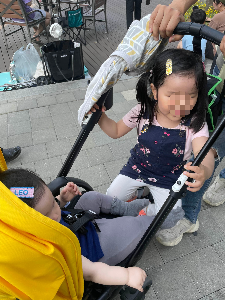 첫째 3~5세 보조의자(휠보드) 앉거나 서기 둘째 신생아 카시트+유모차 프레임으로 트래블 시스템 외출 시 피곤한 첫째 잠깐 보조의자 앉히고 푸시 핸들 조정 차량 이동 후 외출 카시트 채로 프레임에 장착하여 전환 반응형