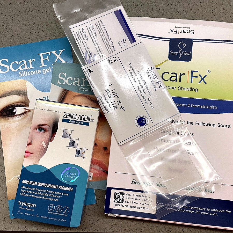 - 상처가 아문 후에는 실리콘 시트(시카케어, 메디폼, 스카에프엑스 등)를 붙이면 흉터 형성을 줄일 수 있다.